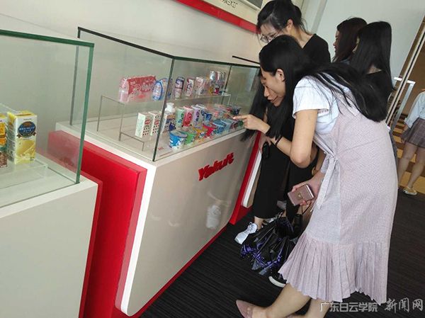 在工作人员的热情引导下,同学们参观了大厅橱窗里展示的各式乳制品和护肤品模型以及不同款式的“益力多”模型。在会议室里同学们欣赏了益力多乳品在不同时期不同国家的广告,感受益力多乳品追求高品质、国际化、绿色健康的经营理念。随后,工作人员结合大屏幕演示和参观指南进行讲解,为我们讲述了公司文化、发展历程、产品质量与5S管理等内容。益力多公司还为在场的每位同学赠送了该公司新鲜出炉的饮品和精美定制笔作为纪念品。接着,大家先后参观了生产线的各个车间,整条生产线严谨有序,从最初的“菌种室”到最后的包装室,整个过程几乎是全自动化、机械化生产,机器与机器之间紧密衔接、有条不紊。同学们在惊叹如此高科技生产方式的同时,也对工厂生产氛围和质量检测有了更加全面的了解。