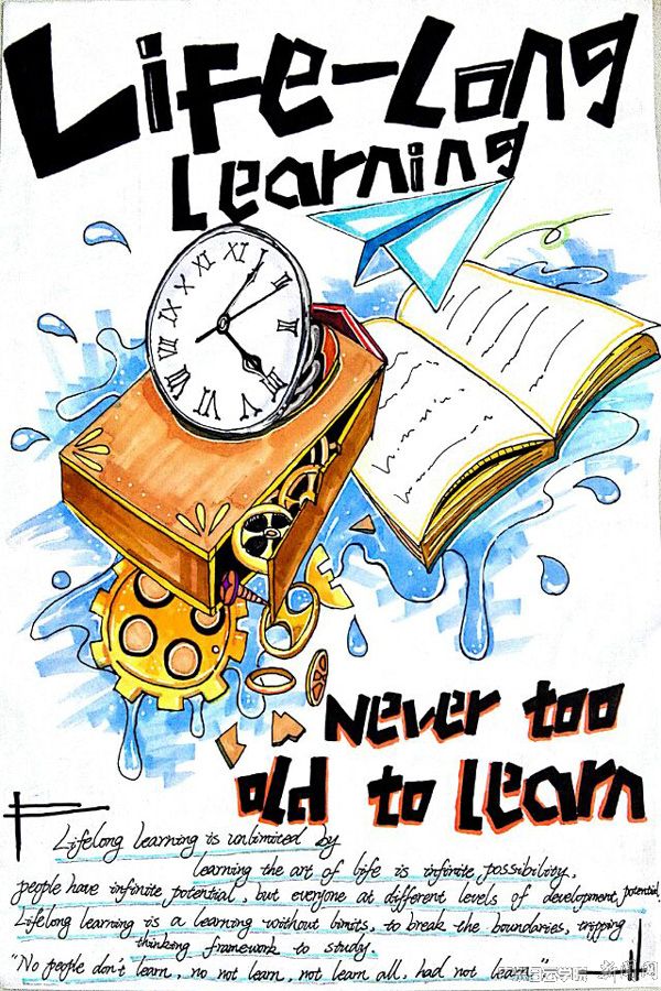 该次大赛的创作主题为“Life-long Learning(终身学习)”,参赛者围绕主题,创作一幅A3大小的纸质版英语公益广告,广告台词不多于50字,要求符合语法规范,无语法错误,表意清晰。参赛方式以个人或者小组为单位参赛。