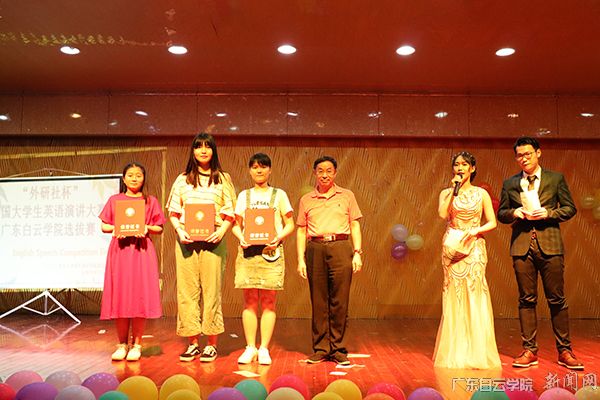 2018届“外研社杯”全国大学生英语演讲大赛选拔赛暨广东白云学院英语演讲大赛决赛于5月17日晚在学校小礼堂顺利举行。本次大赛由外国语学院大学英语教学部主办、英语协会协办,外国语学院高雪梅、王立卓、王天明、陆洁樱四位教师及东莞捷进安防有限公司张国圆先生担任本次大赛评委,外国语学院院长何高大教授、英语系主任刘琴等领导出席活动。