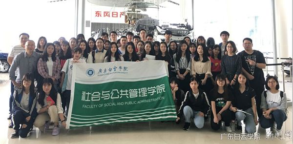 4月24日上午,我校社会与公共管理学院2017级人力资源管理1班在社会与公共管理学院院长杨新荣、副院长黎超、办公室主任郭小曼、人力资源管理系主任杨勇军老师们的带领下参观了花都区东风日产风神有限公司。