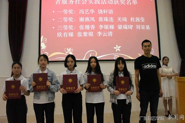 大会分别授予2016级英语7班、2016级德语2班、2017级英语5班等3个班级“优秀班级”称号;在“广东大学生就业创业能力提升行动活动”、“志愿服务社会实践活动”、“大学生寒假社会调研活动”以及“其他社会实践”颁奖环节中, 2017级英语9班余琛瑶等11名同学荣获一等奖,2017级德语1班梁剑惠等24名同学荣获二等奖,2017级英语11班潘丽仙等38名同学荣获三等奖。