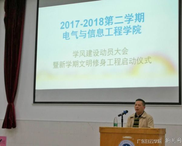 为推进学校文明修身工程建设,切实严明纪律,加强学风建设,优化育人环境,维护校园安全稳定,3月20日晚,电气与信息工程学院学风建设动员大会暨文明修身工程启动仪式在思齐312顺利落幕。出席本次启动仪式的有电气与信息工程学院院长林春景、学院党总支书记阳鹏、辅导员关宝荣、徐建军、唐语丝以及电气与信息工程学院部分学生干部和学生。