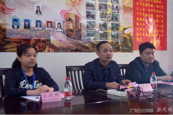 广东技术师范学院天河学院外国语学院党总支书记谭玉清(中)介绍外国语学院党建工作