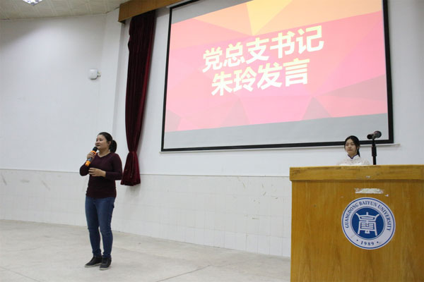 大会首先对上学期团学优秀干事和部门进行表彰。学院党总支书记朱玲在讲话中对团学干部以及全体干事在上学期的努力工作表示感谢,并希望大家学会从工作中总结经验,对待任何事情都要有认真负责的态度,敢想敢做,要为全院学生做出表率。英语党支部书记贺满云提到了要成为一名真正党员应该具备的条件,希望党员同志们积极践行社会主义核心价值观,做好学院的党建工作。