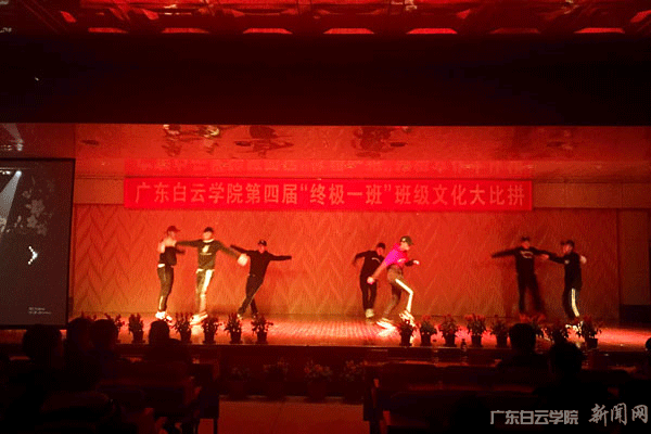 由校团委主办、机电工程学院承办的广东白云学院第四届“终极一班”决赛于12月13日在小礼堂举行。“终极一班”的比赛,是学校文化艺术节的重要活动之一,它是班级文化的一个表现形式,吸引了全校所有学院的参与。机电工程学院党总支书记刘芳文老师、团总支书记张天琦老师、辅导员周玉平、张素云老师以及会计学院吴永华老师出席了本次活动。