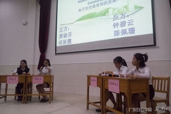 决赛的辩题为“电子支付是否为有利的发展”,要求全程使用德语进行辩论。赛事共分两场,根据年级将入围的8位辩手分为四组,两两对决。2015级组的比赛率先开始,正反双方辩手均展现了出色的口才与思辨能力,在气势上也丝毫不让,争锋相对,全场蔓延着紧张的气氛,赛事达到高潮。最值得关注的,是他们流利的德语表达,尽显了我校德语学生的非凡魅力。2016级组的比赛,虽然选手们在语言能力上稍弱于2015级组,但她们敢于站上辩论台,以一门外语进行辩论的勇气,十分可嘉,我们也尽可期待,她们在下一年的精彩表现。