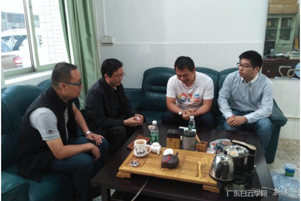 工商管理学院院长李新庚(左二)与林方开先生(右二)亲切交谈