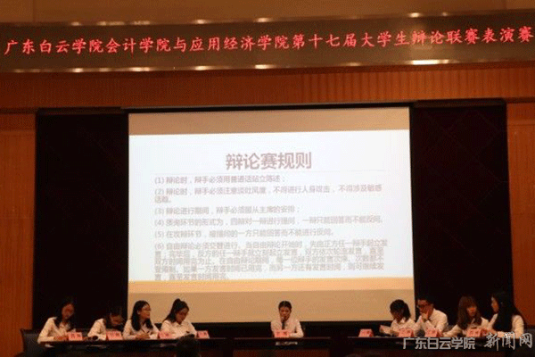 10月16日晚,我校应用经济学院与会计学院第十七届大学生辩论联赛新生表演赛在儒学堂隆重举行。应用经济学院团总支书记兼秘书处秘书长孙百慧、会计学院团总支书记肖华、会计学院辅导员李燕妮、张可以、应用经济学院与会计学院的学生干部代表及学生代表参与活动。