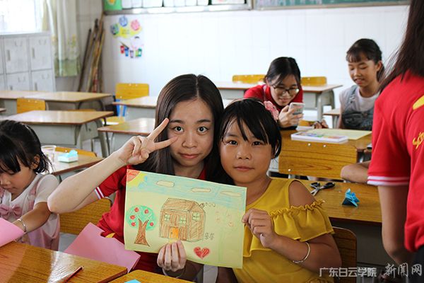 下午,队员们走进大田小学开展外语教学、体育课、美术课等活动。寓教于乐,亦师亦友,大学生志愿者和大田小学的孩子们已然打成了一片。