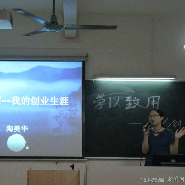 为了使学生更真实了解创业过程,工商管理学院工商管理系在6月20日下午,特意邀请了陶美华博士到校,为2016级工商管理专业的160名学生分享自己的创业生涯。陶美华副研究员,博士,美国北卡大学访问学者,在广东省微生物研究所从事研究工作10多年,主持和参加国家基金、省科技计划项目等10多项,发表科研论文23篇,授权国家发明专利8项,有多年生物活性物质、化妆品配方研究经验,对染发、美白、抗癌、抗菌等活性物质进行了多年研究;大学毕业后在广州丹姿化妆品有限公司任技术工程师2年,曾为广州丸美生物科技有限公司担任技术顾问。2011年研制成功一种安全健康的植物染发剂,并申请国家专利“一种不含对苯二胺、双氧水的不过敏植物染发剂”(专利号:CN102379837A)。此专利产品在“广州绿蒎生物科技有限公司”实现转化并生产销售。