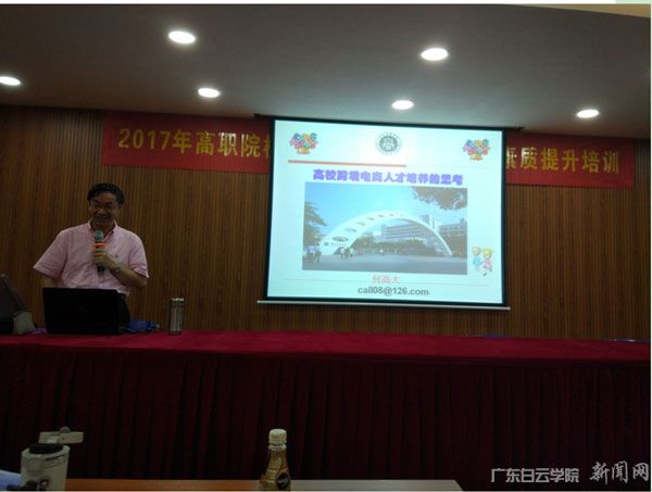 首日,我校外国语学院院长何高大教授应邀开展了题为《高校跨境电商人才培养的思考》讲座。何院长介绍了广东白云学院校企协同育人的经验,并从高校商务英语(国际贸易、经贸英语)等专业发展现状、专业人才社会需求调研与预测分析报告、国家一带一路看与internet+e Commerce的发展战略与跨境电商的人才需求、跨境电商人才培养的问题与解决方案等四个方面做了精彩的讲解,引发在座领导和专业教师对高校跨境电商人才培养的思考,对各高校的跨境电商课程建设有很大的启发意义。
