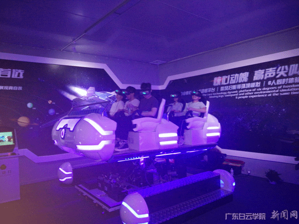 学生们在黄经理的带领下,首先参观了公司的两个生产车间,观看的企业生产出来的产品:VR赛车-狂野时速、影动时空-虚拟互动体验巅峰巨制、9DVR-虚拟现实动感影院设备等等。听着黄经理的讲解,看着调试工程师的演绎过程,学生们感受着科技幻化出来的产品,体会着企业文化带给每个人独特的魅力。接下来是参观广州影动力文化发展有限公司文化长廊和办公区域,一张张证书、一个个奖杯用它独特的方式诉说着企业的成长史,文化长廊以时间为主线展示给学生们企业的奋斗历程。学生们认真的看,时不时用手机拍下这个值得自己记住的瞬间。参观完文化长廊和办公区域后,学生们又来到企业的VR体验馆,体验馆分为一个主厅,三个辅厅。主厅主要展示的是VR赛车-狂野时速系列产品、9DVR射击游戏、9DVR影动时空等设备。辅厅主要展示的是7D互动影院、VR Family等。