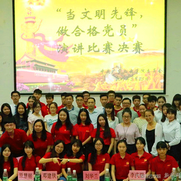 5月25日晚,由广东白云学院学工部主办,建筑工程学院、艺术设计学院、工商管理学院、社会与公共管理学院承办的广东白云学院党日活动之“当文明先锋,做合格党员”演讲比赛决赛在思齐搂312成功举办。学工部副部长邓建侠、工商管理学院党总支副书记刘华兰、学工部相关老师和各二级学院学生党支部书记代表及330余名学生党员及入党积极分子参加了本次活动。