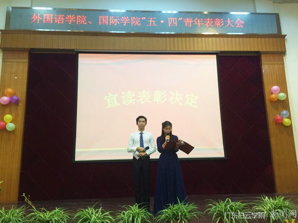5月18日晚,由外国语学院、国际学院团总支学生会权益服务中心组织部承办的广东白云学院外国语学院、国际学院“五·四”青年表彰大会在儒学堂顺利召开。莅临本次大会的领导和嘉宾有学院党总支部朱玲书记,团总支梅俊强书记,辅导员卢娜老师,学院团总支学生会学生干部以及2016级部分学生。