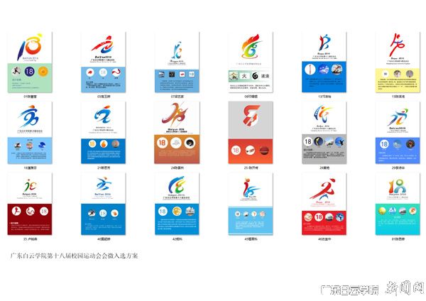 随着广东白云学院第十八届校园运动会的圆满落幕,由艺术设计学院视觉传达设计系马文镰、项德娟、徐莉等老师组织指导的2016-2017学年第一学期课外活动专业能力训练《广东白云学院校运会会徽设计竞赛训练》项目顺利完成。