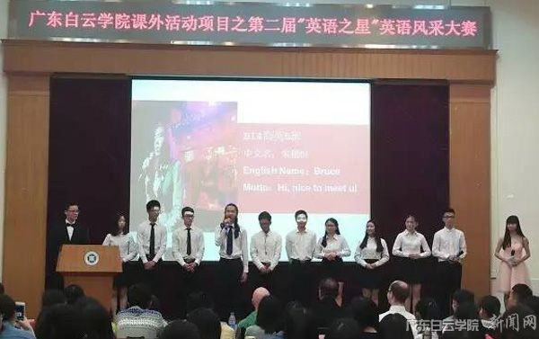 为提高学生的英语演讲水平,激发同学们学习英语的热情,广东白云学院外国语学院国际学院第二届“英语之星”英语风采大赛,于12月7日晚在儒学堂顺利举行。本次比赛由外国语学院英语教研室的孙国兴老师策划、指导,外教Ray, Neil, Paul及孙国兴老师、田键老师等担任评委,广东白云学院副校长兼任外国语学院国际学院院长沈根生教授、党总支书记朱玲、团总支书记梅俊强、辅导员谢远霞老师等也出席了本次活动。还有200名我院同学来到现场为参赛选手呐喊助威。