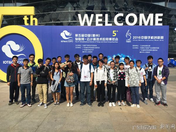 11月1日,为期3天的2016中国手机创新周和第五届中国(惠州)物联网· 云计算技术应用博览会(“云博会”)在惠州会展中心开幕。当天上午,由翟敏焕、梁永恩两名教师带队,我校电气与信息工程学院物联网工程专业2015级20余名学生前往惠州参观了博览会。