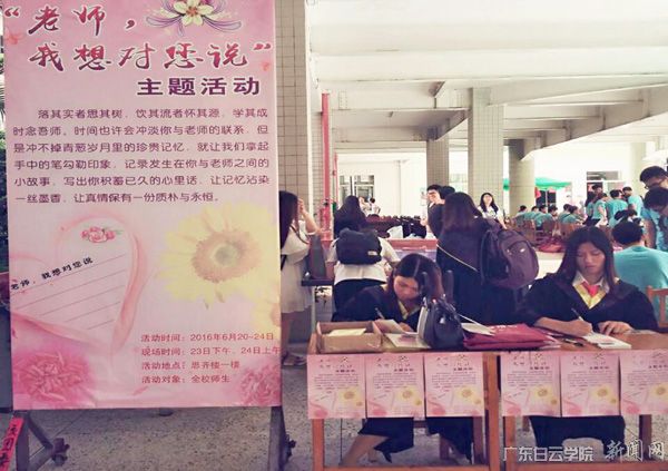 活动现场向学生发放了精美卡片,学生可将平日隐藏在内心的话语,通过卡片及文字向老师传达,诉说自己的心声。活动一开始就受到了广大师生的关注,也得到了许多同学的积极参与,尤其是刚刚参加完毕业典礼的毕业生们,他们带着激动的心情,主动拿起笔,向老师们感恩、告别,有些学生一连写了好几张卡片,说想跟曾教过自己的老师和辅导员一一告别。那一刻,真情在笔尖流露,现场气氛颇为温暖。