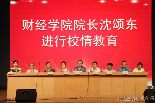 首先由财经学院院长沈颂东为新生讲述学校发展历程、培养人才的目标,财经学院的整体情况以及在大学里如何学习和应该掌握哪些能力等相关内容。沈院长说,广东白云学院是广东省首批民办本科院校,是广东省民办高校中第一个通过教育部教学评估的院校。目前,在校生1.7万多人,学校坚持“以学生为中心”的教育教学理念,实施国际化的引领战略和信息化的支撑战略,秉承“追求卓越、敢为人先”的白云精神,力争建设一流应用技术大学。而财经学院是广东白云学院学生人数最多的二级学院,学生总数达5500人,共有六个专业,其中金融学专业为学校重点学科专业,会计学专业为省级综合改革试点专业,经管实验教学中心为省级实验教学示范中心。沈教授鼓励新生认真规划自己的大学生涯,做到学有所成、学有所获。并就大学四年向新生提出六点要求:第一,要有明确的学习目标,要不断提高自己的专业能力和就业能力;第二,要调整心态,学会与人打交道,要理解人,懂得人,做好人与人之间的和谐相处;第三,要提高自己的思维能力,培养能做、能说、能写、能想等综合能力;第四,要建立自己良好的人脉和团队精神;第五,要取得优良的学业成绩。其中包括理论学习,实践学科,专业课程和选修课。