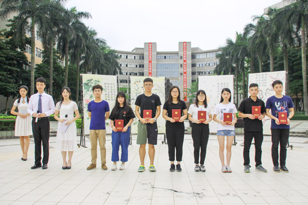 在活动中,参赛选手奋笔疾书,尽显书画功底,真、行、草、隶、国画、素描、水粉、油画等样样俱全,创作了一幅幅栩栩如生的作品。张绪平主任和欧阳振勇处长也当场展示了书法,赢得了在场同学的喝彩。