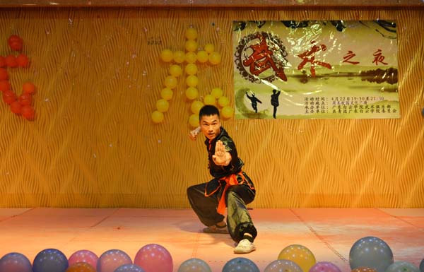 为丰富大学生的课余生活,传扬武术精神,4月22日晚,由广东白云学院武术协会主办的周末文化艺术节之第四届武术之夜活动在小礼堂隆重举行。体育教研室主任孙细英、体育教研室部分教师出席了活动。