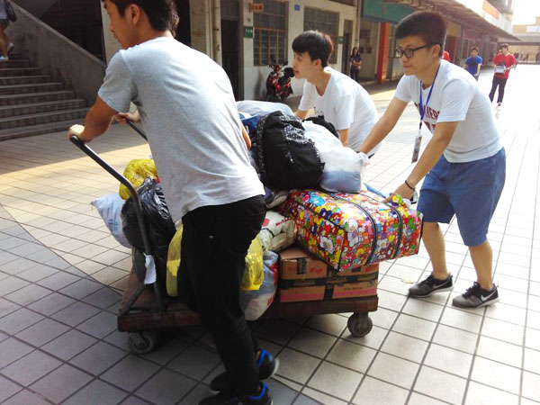 学生工作人员搬运衣物