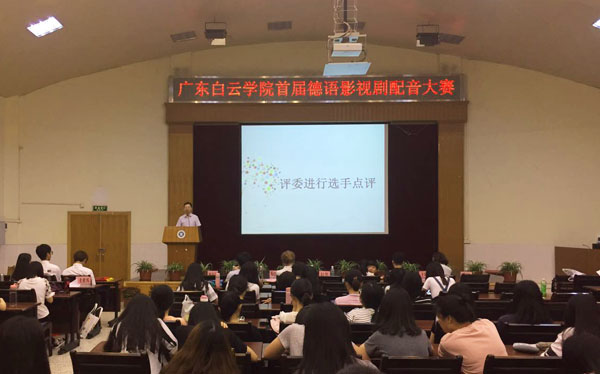 5月5日晚,由外国语学院德语系举办的广东白云学院第十九届科技创新节之首届德语配音比赛在儒学堂举行。本次比赛由德语系赵凯主任、外教妮可拉、向绍英老师担任评委,学院团委书记梅俊强、外教金到延在现场观摩了比赛。