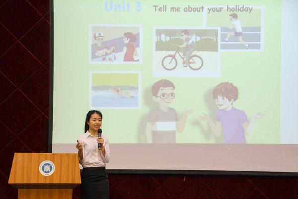 决赛共分为三个环节。第一环节是参赛选手进行全英文授课,授课内容为小学六年级英语课文。选手们在课堂上充满自信,思路清晰,表达流利,并且能够灵活运用肢体语言辅助诠释,与观众互动良好,课堂气氛活跃;第二环节为评委提问。在此环节中,选手们对答如流,赢得了阵阵掌声。最后是个人才艺展示。选手们展示了唱歌、跳舞、折纸、电影配音和英语绕口令等才艺,既为本次大赛增添了色彩,也展现了新时代教学的创新之处。
