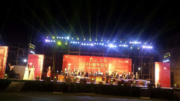 为丰富学生的课余文化生活,弘扬中华民族优秀传统文化,把高雅艺术带进校园,12月27日晚,我校民乐协会民乐团在西区运动场举行了大型“白云之春”新年音乐会暨民乐团首届汇报演出。校长黄大乾及其他相关领导,众多爱好民乐的师生现场欣赏了这场精彩的演出。