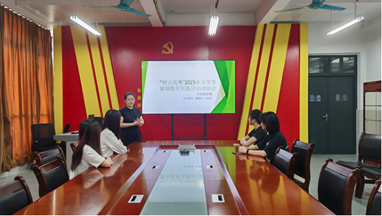 出征前,团队在博艺楼703 会议室举行了专项动员与安排会议。李彩凤书记在会上深入阐释了本次实践活动的重要意义,并明确了调研重点。她强调,同学们要将所学专业知识与社会实践紧密结合,积极为乡村振兴赋能,在实践中提升综合素质与实践能力,厚植社会责任感与家国情怀。黄颖恩老师则针对调研方法、团队协作以及安全管理等方面进行了详细部署,为实践活动的顺利开展提供了清晰指引。