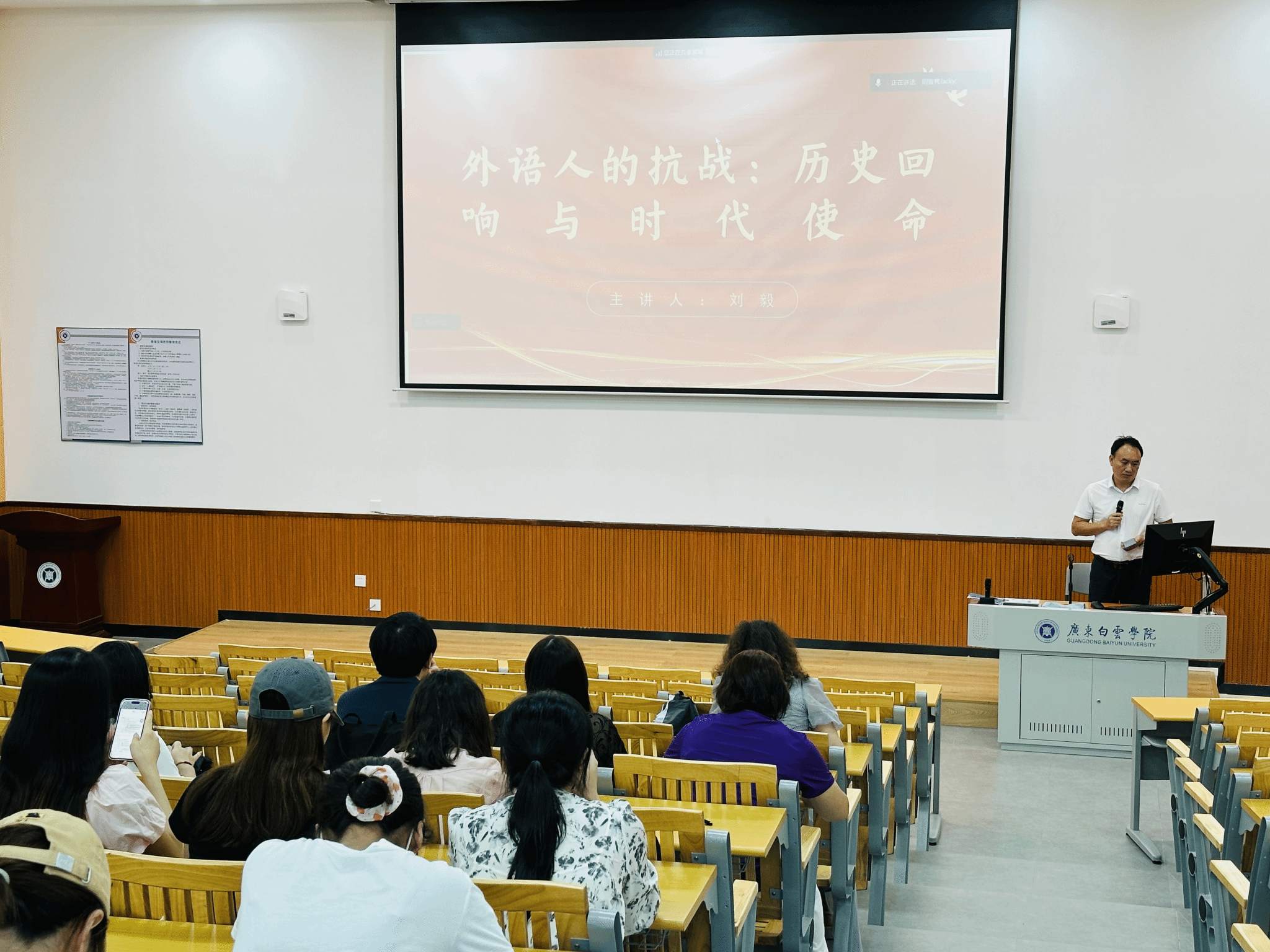 9月25日,外国语学院教工第一党支部在励学楼405室开展“外语人的抗战:历史回响与时代使命”主题党日活动。活动由党支部副 书记刘毅主讲,全体党员参加。