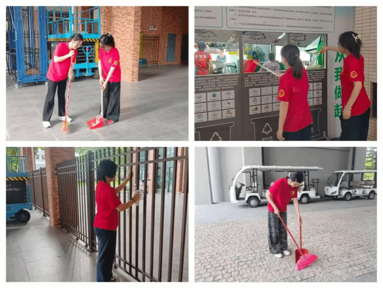 活动伊始,党支部提前周密部署,科学划分责任片区,明确任务分工。大家精神饱满、干劲十足,展现出高度的责任感和奉献精神。学思苑3栋的组员们对走廊平台展开精细化清理作业,针对窗沿、栏杆以及各类公共设施进行全方位、无死角地认真擦拭;白云楼周边的组员们专注清扫校道落叶、擦拭墙面门窗,维持师生通行区域洁净安全。活动现场组织有力、协作高效、氛围热烈。