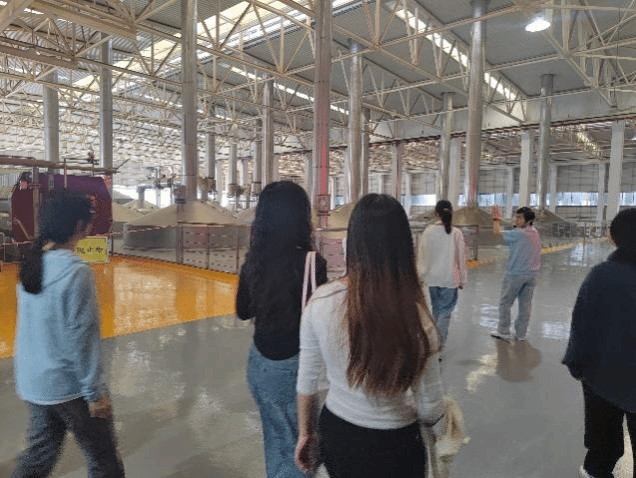 在珠江啤酒专业讲解员的引导下,师生们依次参观了糖化、发酵、过滤、灌装等核心生产车间。同学们对高度自动化的生产线和井然有序的物流调度系统表现出浓厚兴趣。从原料入库到成品出库,每一个环节都体现了珠江啤酒对品质的极致追求。在参观过程中,企业质量负责人详细介绍了其覆盖全流程的质量控制点和全链条质量追溯体系。同学们亲眼看见了如何通过先进的技术手段和管理制度,确保每一瓶啤酒的口感和品质稳定如一,对《生产与运营管理》《质量管理》等课程中的抽象概念有了具象化的深刻认知。