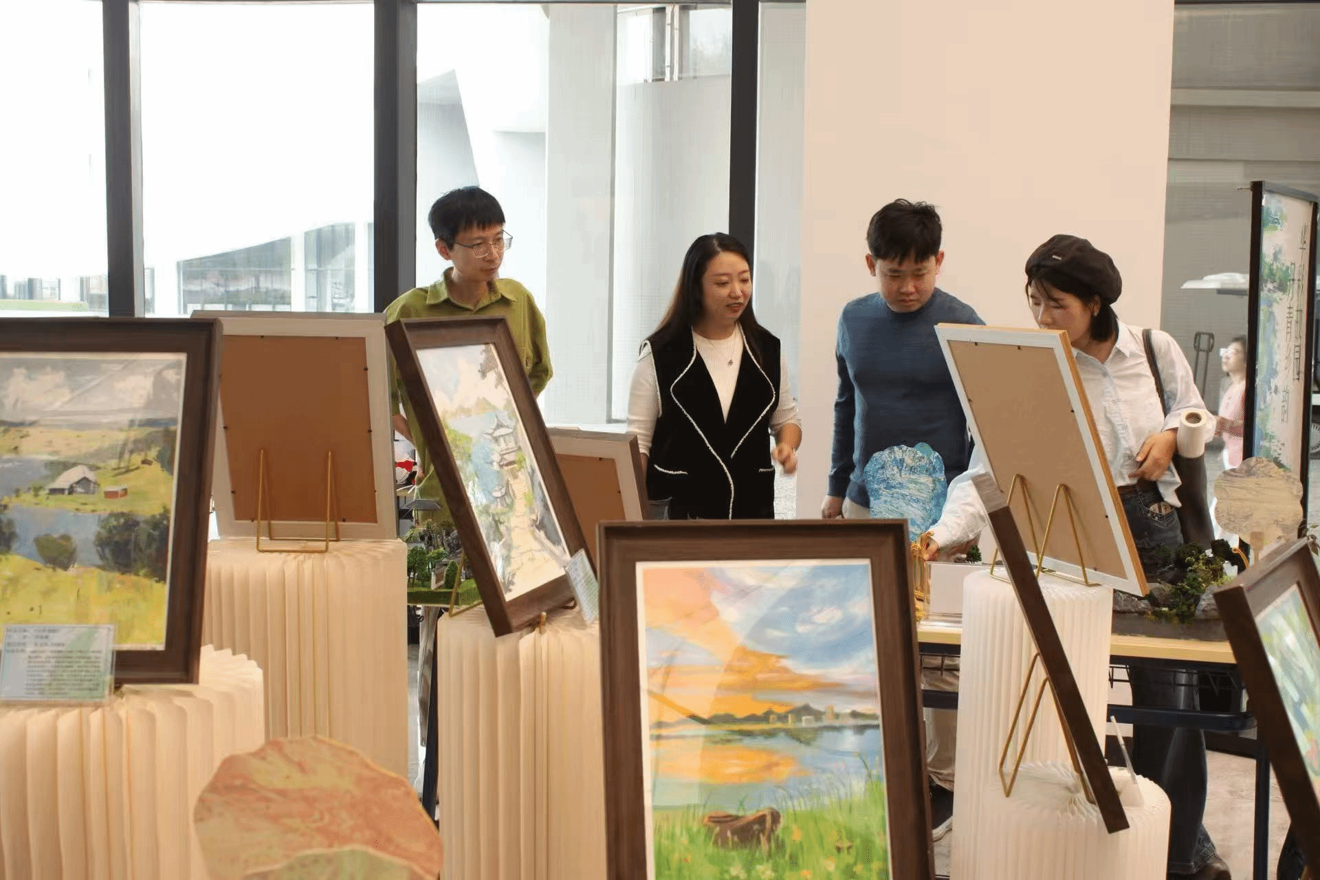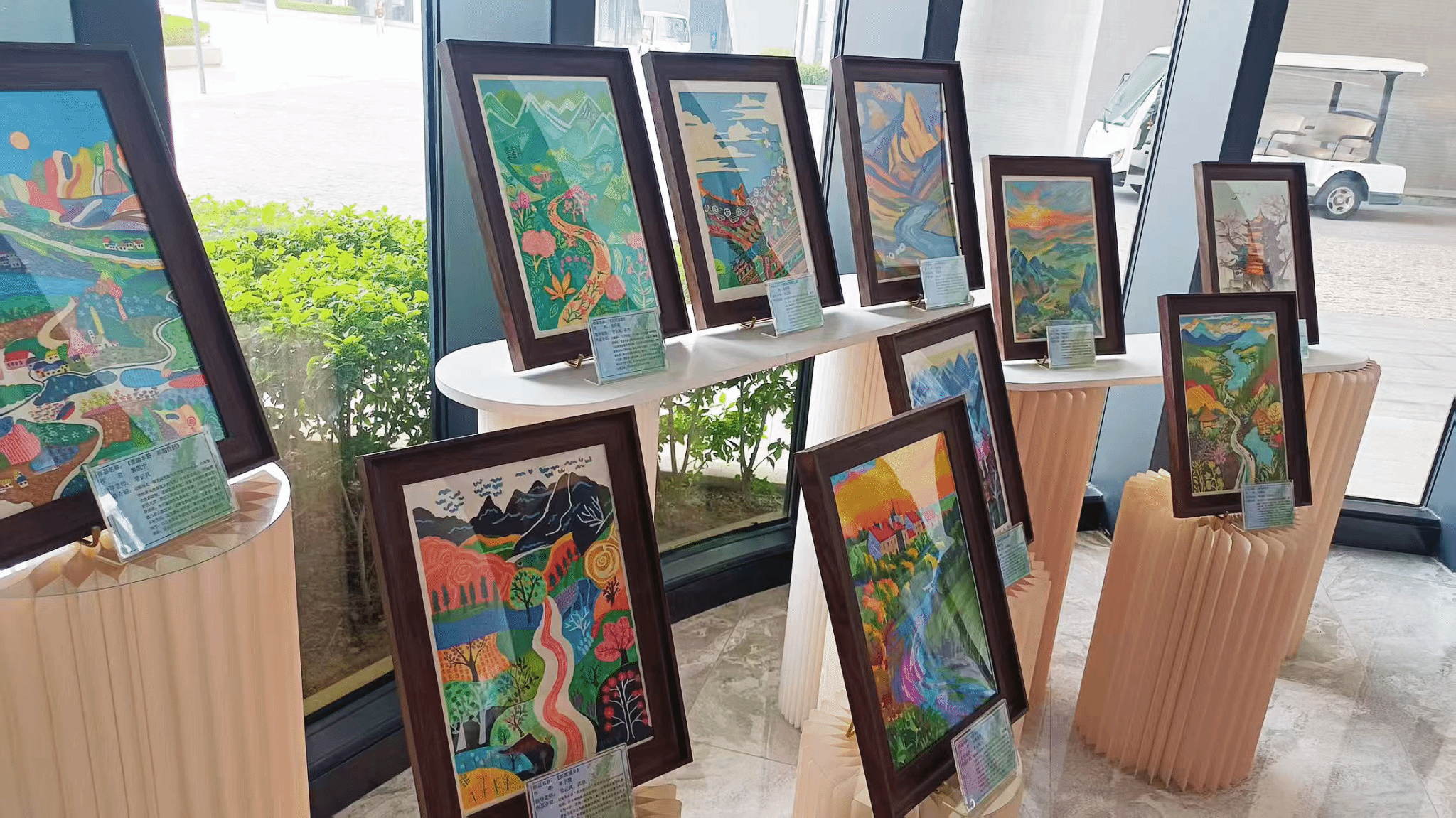 展览筹备期间,建筑工程学院风景园林专业教师常云凤、冯晓扬,带领创景工作室成员全程参与,从作品创作、装裱到展区规划、陈列,均体现出严谨的专业态度与高效的团队协作精神。此外,创景工作室构建的"三维培养体系"为本届展览注入专业动能:线上开设"色彩语言解码"专题研讨会,线下进入色彩课堂专业教师亲自指导,并邀请企业导师解析地域色彩美学,建立"双师指导机制",使学生在色彩心理学、空间叙事学等专业领域获得显著提升。