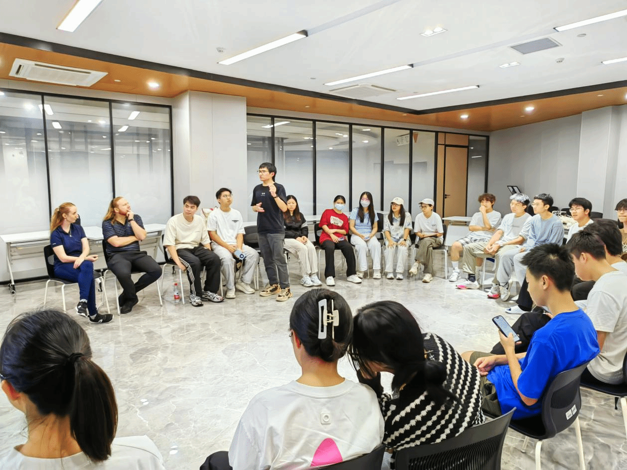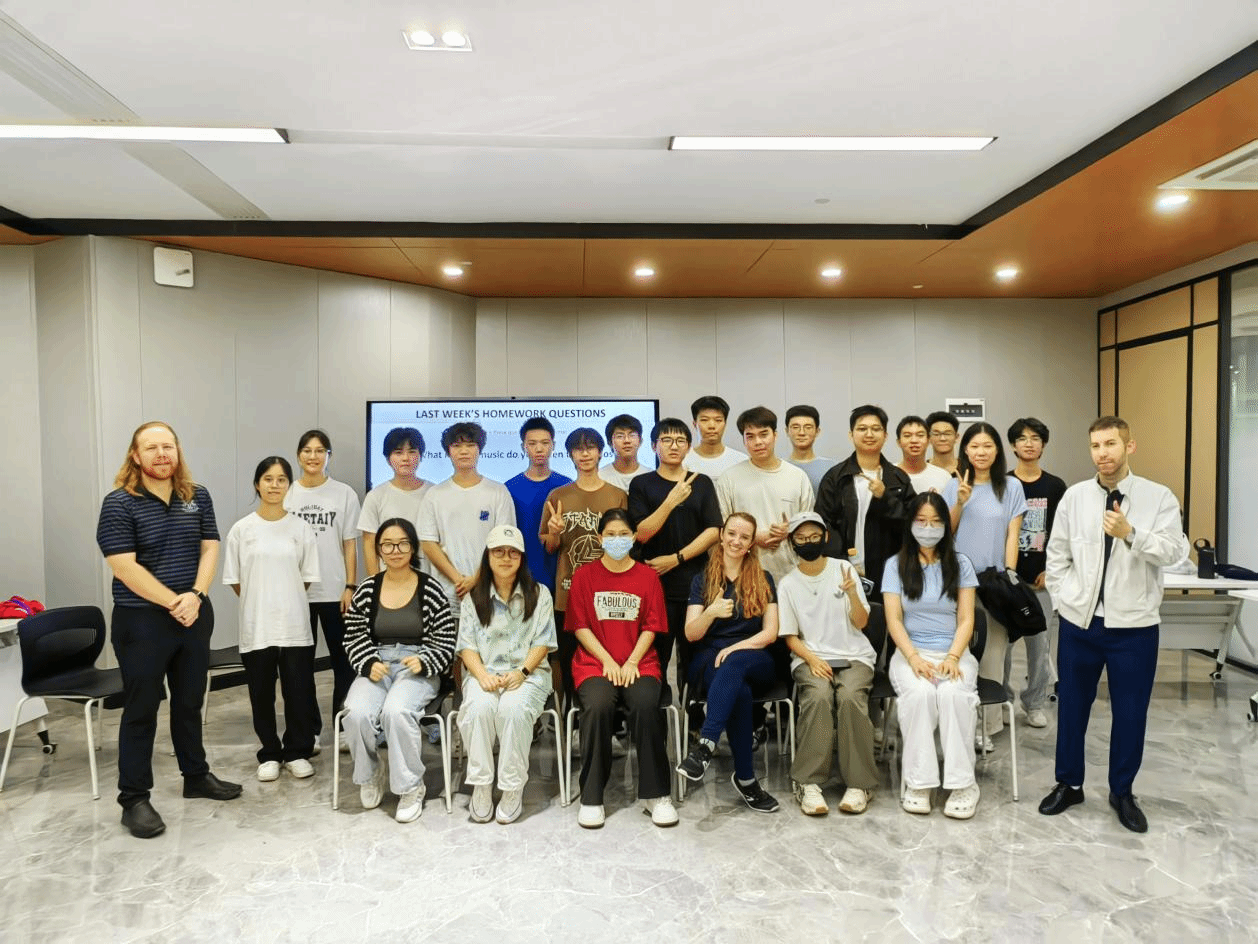 活动最后,全体师生围绕“Discussion: Does music or film influence people’s behavior?(讨论:音乐或电影会影响人的行为吗?)”展开深度交流。同学们结合自己喜爱的音乐、电影作品,从情绪调节、价值观引导、行为模仿等多个角度分享观点。有同学表示,励志歌曲曾在自己备考低谷时给予动力,让自己更坚定地坚持下去;也有同学提到,部分电影中的正能量情节会让自己更注重友善待人。外教们则适时引导,补充跨文化视角下的观点,让讨论更具深度与广度。大家在思想的碰撞中拓宽了视野,也进一步提升了英语思辨能力。