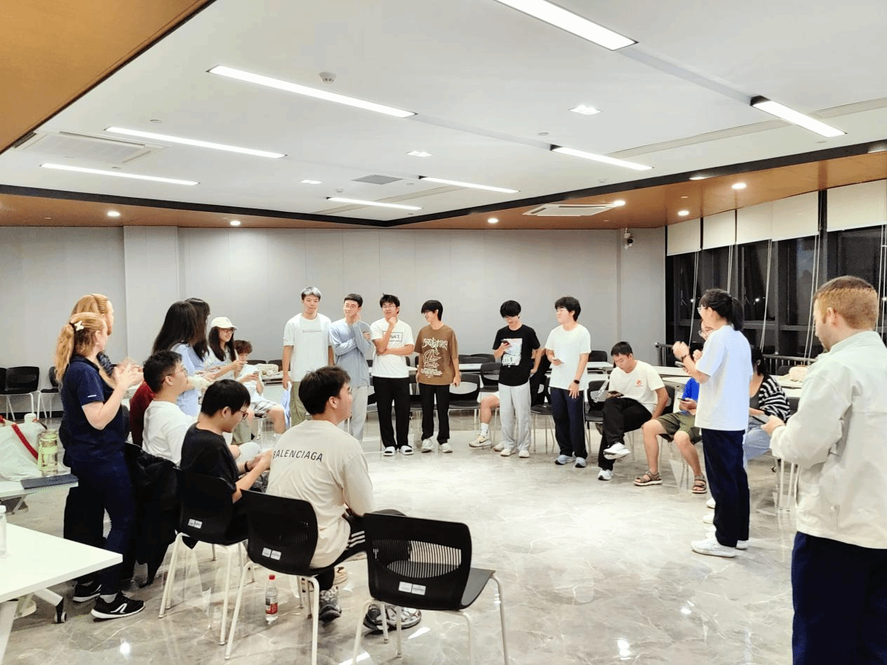 在备受期待的 “Main Activity: Desert Island Playlist(主要活动:荒岛歌单)” 环节,Mr Kowo将参与的学生分为多个小组,要求各小组讨论选出5首歌曲或5部电影,并模拟 “若被困荒岛,你最想携带的作品” 场景。讨论过程中,同学们各抒己见,有的推荐充满力量的励志歌曲,有的分享治愈系电影,还结合自身经历阐述选择理由,在交流中不仅锻炼了英语表达,更增进了彼此的了解。随后,各小组依次上台展示自己的 “荒岛歌单”,并伴随着所选歌曲的旋律跳起简单的舞蹈,灵动的舞姿与欢快的音乐相得益彰,台下掌声与欢呼声此起彼伏,将活动气氛推向高潮。