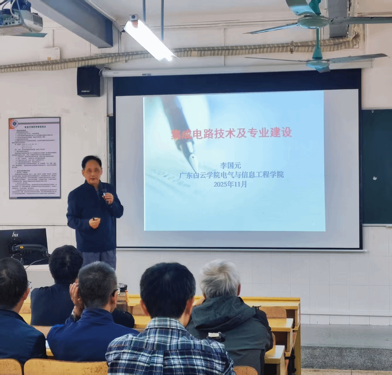 2025年11月13日下午,电气与信息工程学院在至善310举办《集成电路技术及专业建设》专题讲座。本次讲座特邀请电气与信息工程学院集成电路设计与集成系统专业负责人、银龄教师李国元教授主讲。李教授聚焦集成电路领域核心技术与专业建设关键方向,以“产业发展趋势+详细教学路径”双线并进,图文并茂,层层递进,为高校精准对接产业需求、优化人才培养体系提供了清晰指引。