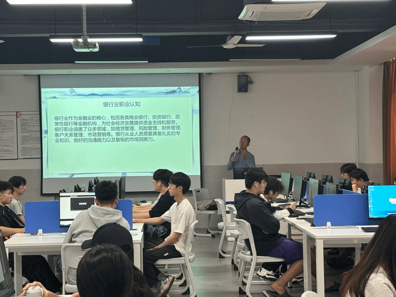 为深化产教融合,将企业真实项目与案例融入教学全过程,广东白云学院应用经济学院金融学《银行业务岗位实践》课程中,持续推进“企业导师进课堂”教学模式。2025年11月14日,课程特邀校企合作单位——广东东高科技投研学院副院长揭冲作为企业导师,为学生带来了一场以“银行财报分析与业务风险防控”为核心的实战教学。