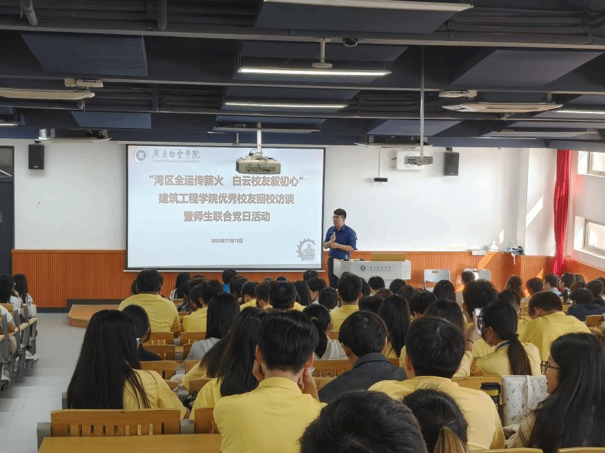 11月15日,广东白云学院迎来以“湾区全运传薪火,白云校友叙初心”为主题的校友返校日活动,校园内洋溢着欢聚的喜悦。建筑工程学院为两位返校校友2022届毕业生佛山嘉纯制衣总经理杨嘉泰,2019届毕业生广东精信工程咨询有限公司广州区域总经理王超举办了温馨而富有意义的专场交流活动。