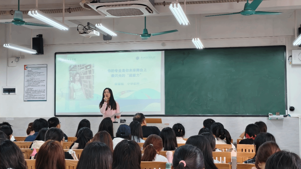 2018级应用心理学毕业生徐雪桂,担任小学语文与心理教师。她以“你的专业,是你未来舞台上最闪光的‘超能力’”为题,分享了如何将心理学知识融入教学与学生管理的经验。她提到,心理学赋予她“温暖的看见”和“读懂人心”的能力,帮助她在面对“问题学生”时,用行为动机理论转化学生行为,实现教育共情与课堂创新的融合。她鼓励学弟学妹:“别让专业只停留在课本上,要让知识在生活中‘活’起来。”