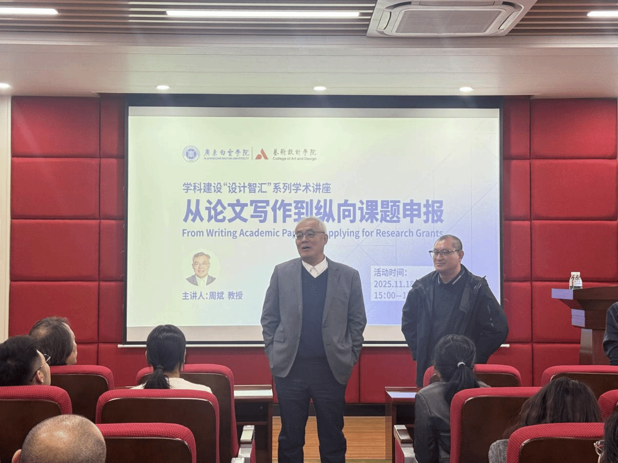 为助力教师提升学术研究与课题申报能力,破解科研核心难题,艺术设计学院于11月18日下午在博艺楼707举办“设计智汇”系列学术讲座。讲座特邀周斌教授主讲,主题为“从论文写作到纵向课题申报”,为师生带来实用且具有指导性的分享。