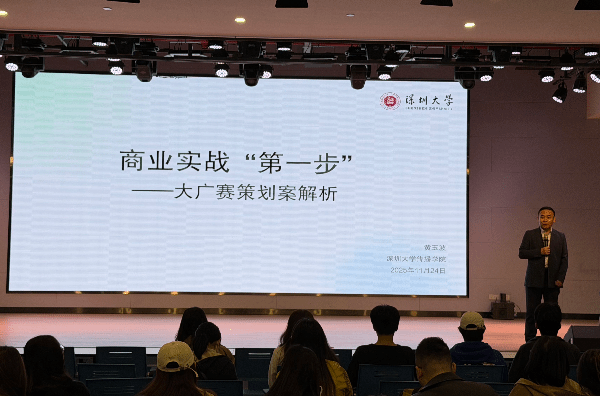 讲座伊始,黄教授以其丰富的业界与学界经验,高屋建瓴地引导在场师生“清晰理解大广赛”。他指出,大广赛不仅是展示创意才华的竞技场,更是连接校园与社会、模拟真实商业环境的“预演地”。他强调,参赛者应超越“学生作业”的思维,以“准广告人”的身份,深入洞察品牌诉求与市场痛点,将赛事视为职业生涯的宝贵起点。