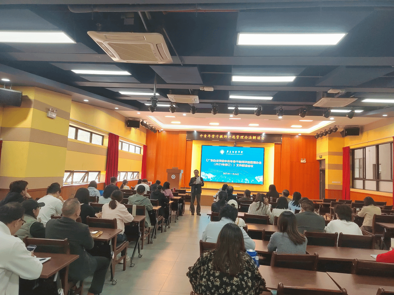 为深入贯彻落实学校高质量发展战略,进一步加强我校中青年骨干教师队伍的培育与管理,充分发挥其示范引领与核心带动作用,11月26日下午,我校召开中青年骨干教师评选文件解读专题会议。