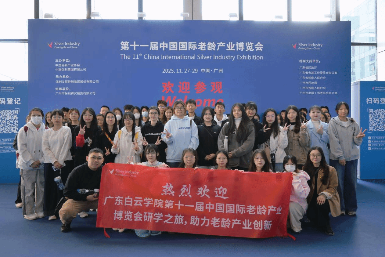 11月27日—29日,第十一届中国国际老龄产业博览会精彩开幕,以“引领智慧养老科技助残新未来”为主题,集中呈现智慧养老、健康监测、康复辅助、居家安全等领域的前沿产品与创新服务。本届SIC老博会由中国老龄产业协会、中国保利集团有限公司主办,广东省民政厅、广东省老龄工作委员会办公室、广东省残疾人联合会、广州市民政局、广州市残疾人联合会、广州市老龄工作委员会办公室特别支持。在工商管理学院书记刘华兰和副院长招建贞的动员下,社会工作系积极应邀,张苑仪老师统筹组织,付欢老师、林子睿老师带队,55位社会工作系学生代表前往参会学习。