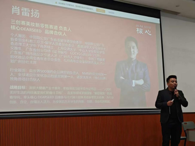 宣讲会上,肖雷扬董事首先解释了设置三创赛美妆新零售赛道的背景。随着数字经济的蓬勃发展,新零售模式,特别是线上线下深度融合的业态,已成为消费市场增长的核心驱动力。美妆行业作为新零售探索的前沿阵地,其市场规模与发展潜力巨大,但目前国内大部分市场份额为国外品牌占据,急需提升中国化妆品核心竞争力。随后,肖董围绕赛事核心规则展开解读。美妆新零售赛道总分100 分中,实操分占比高达 45%,是决胜关键,该部分细分为创业准备、创业过程、创业业绩三大模块。肖雷扬董事对每个模块的评分规则进行了深度解读,鼓励学子结合美妆行业趋势与数字技术打造差异化项目。