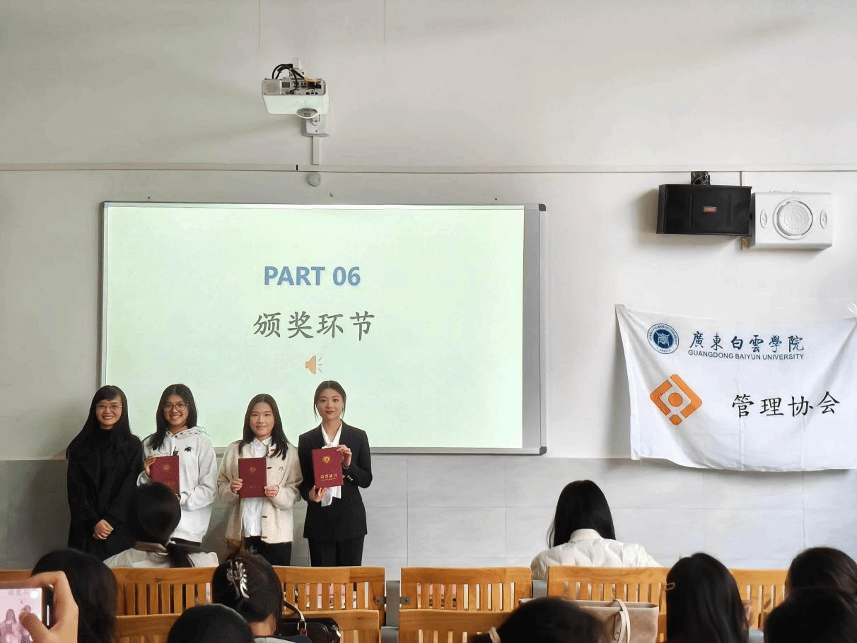 一番令人倍感紧张的评分环节结束后,来到了大家期待的颁奖环节!获得一等奖的是不讲礼仪不队、不想早起队,获得二等奖的是無人帮队、什么都队、黎燕珍、蔡婉晴同学,获得三等奖的是李楣、王冬林、黄欣荣同学、牛儿乐队、有礼有仪队,获得优秀奖的是胜利队、有请下一队、钟心怡、潘福莹同学。至此第十届商务礼仪风采大赛圆满结束!