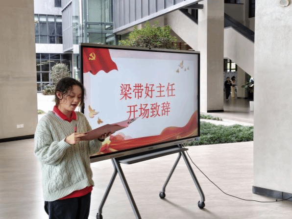 活动伊始,外国语学院学生党员服务中心主任梁带好发表致辞。她表示,研读红色故事不仅是回望峥嵘岁月、铭记初心使命的必然要求,更是将家国情怀与专业素养深度融合的生动实践。希望通过本次党日活动,大家能够真正沉下心来研读,带着思考交流,从革命先辈的奋斗史诗中汲取信仰的力量,砥砺家国情怀。