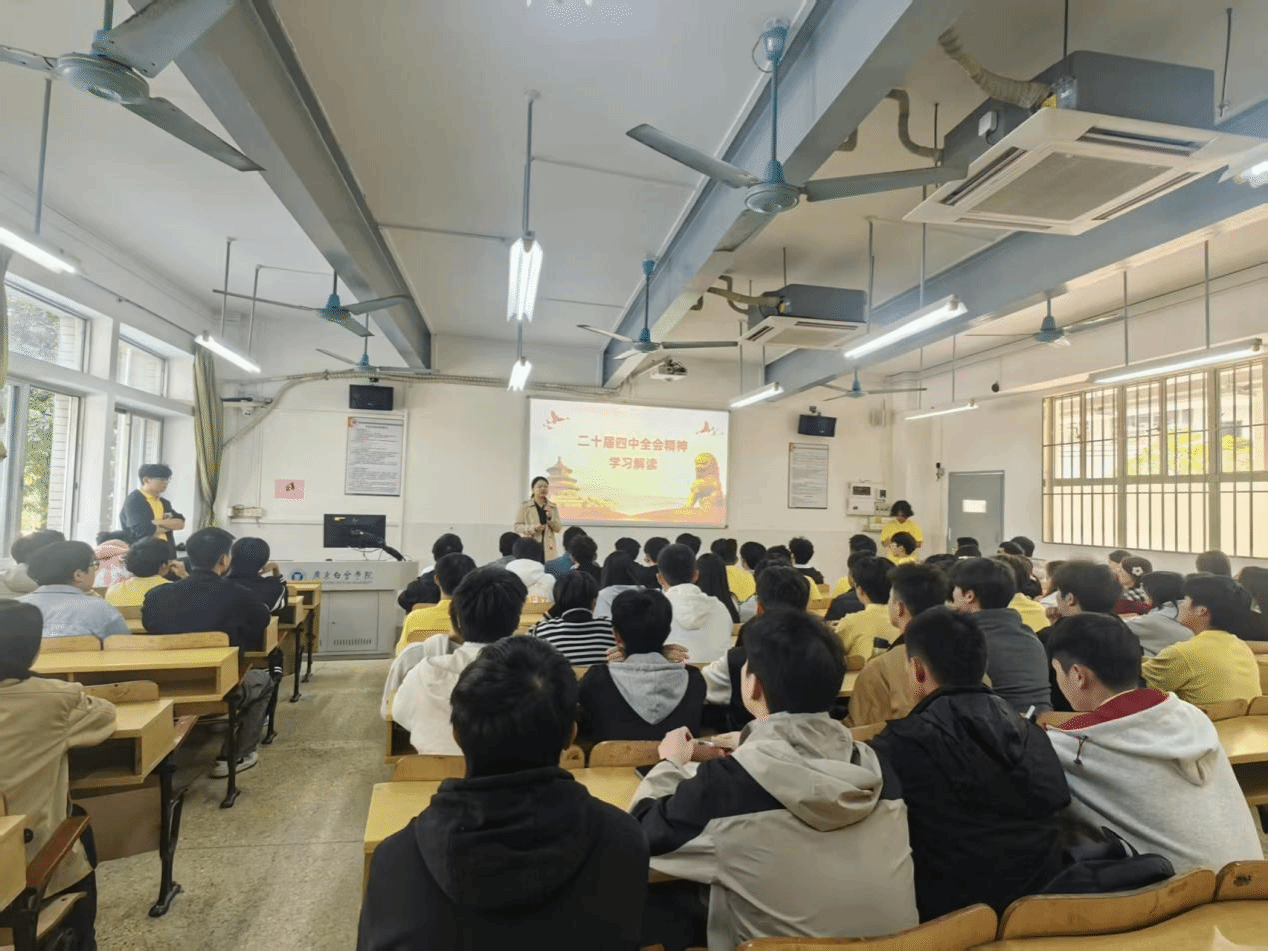 为深入学习宣传贯彻党的二十届四中全会精神,推动全会精神进校园、进课堂、进头脑,2025年12月4日,广东白云学院智能制造工程学院在至善楼209召开学习贯彻党的二十届四中全会精神专题宣讲会。学院党委副书记冯绮玲作专题宣讲,全体学生党员及入党积极分子参加会议,会议由学院学生党支部书记周玉平主持。