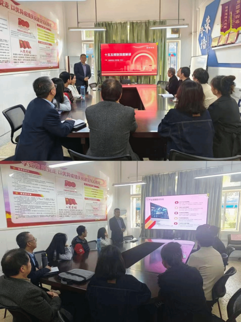 在理论联系实际环节,李院结合支部建设成果进行深度解读。他以支部 “双师培育驱动”为例,指出全会强调的 “建设高素质专业化干部队伍”,在支部具体体现为10多名党员教师获评校级“双师双能型”优秀教师的实践成效;围绕“数智教学驱动”,他解读了建成1门国家一流课程,5门省级一流课程的经验,强调这是落实全会“培育堪当民族复兴大任的时代新人”要求的生动实践。同时,他结合与多家智能制造头部企业的共建案例,说明“校企协同驱动”正是响应全会“深化产教融合”部署的具体举措。