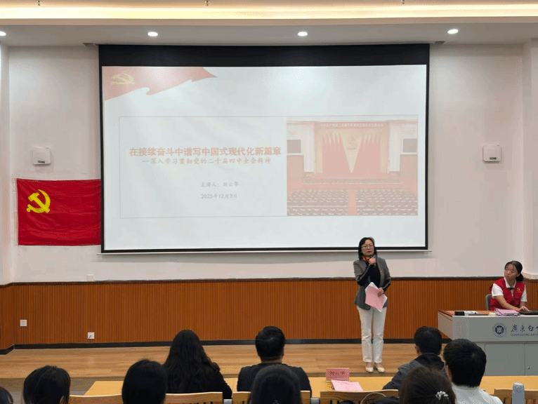 刘云华副书记对三十七位入党积极分子的表现予以肯定。她指出,部分学员所在宿舍多次获评文明宿舍,展现出积极向上的精神风貌和团结互助的集体意识。刘云华强调,入党积极分子要在思想上严格要求自己,行动上踏实奋进,纪律上严守规矩,以实际行动践行入党初心,不断加强自身建设。她希望全体学员在学习、工作和生活中发挥先锋模范作用,锤炼过硬本领,弘扬优良作风,以党员标准严格要求自己,争取早日加入中国共产党。